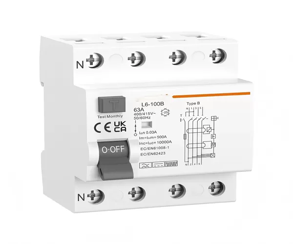 AP Type B Residual Current Operated Circuit Breaker (RCCB), with a rated current of 100A and the ability to detect a wide range of leakage currents, is a rugged and durable RCCB ideal for high-power applications such as industrial environments, renewable energy systems, and electric vehicle charging infrastructure. The APL6-100B ensures enhanced safety and reliability, protecting people and equipment from the risk of leakage current.