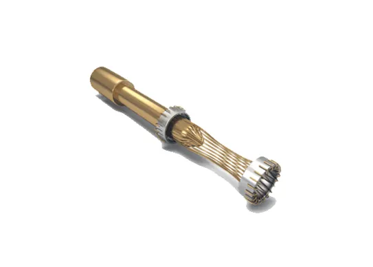 The AUPINS Pogopin Hypertac Hyperboloid Contact is a High reliable and high precision electrical connector metal part designed for electric connect power supply applications. It is widely used in electrical connections, high precision Power supply in the industry of military scenario. Engineered for durability and efficient conductivity, it ensures stable electrical transmission for the power source components. The power range could reach 1A MAX, DC 12V.